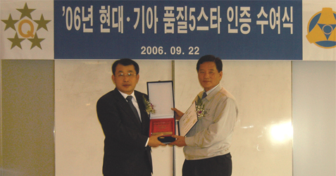 我们用自动系统代替生产现场,并引进多样的质量管理方法,积极进行质量创新活动。不管是哪种职务领域,员工们都参加焊接产业技术教育并取得资格证,全体员工都具有主人意识和创造性心态,致力于提高质量管理能力,以实现顾客满意,这就是成长的动力。