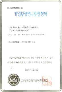 In 1995, SEJUNG Co., Ltd. showed its first appearance to the world as a corporation specialized in automotive parts. In spite of unexpected hardships during the establishment, we had established a cornerstone with one mindset of all employees to overcome the International Monetary Fund (IMF) financial crisis only with our sweat, tears and passion.