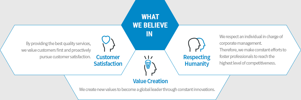 We will provide world-class products and services so that we can hold a true global leadership by building a global customer-oriented mindset and pursuing a strategic global management system.