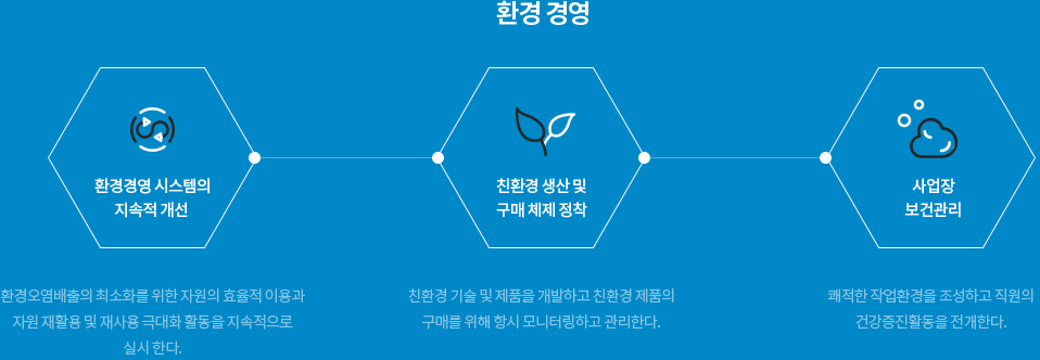 환경오염 예방을 위한 연구개발에 전력을 다하여 기업의 가치를 제고하고 사회적